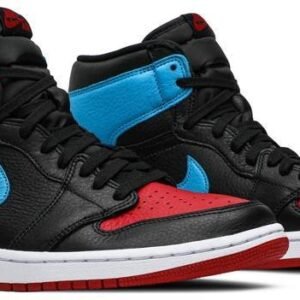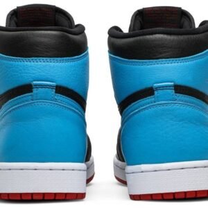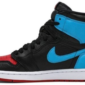 Air Jordan 1 High OG ‘UNC To Chicago’ dips Michael Jordan’s iconic first signature sneaker in a mix of two popular colorways. It features hues from MJ’s college and first pro team . the University of North Carolina Tar Heels and the Chicago Bulls. Dressed in black . Dark Powder Blue and Gym Red . the women’s shoe comes with a premium upper and displays both Jordan and Nike branding. Finishing the look are toe box perforations and a rubber outsole with a pivot point tread pattern.