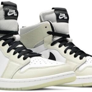 The Women’s Air Jordan 1 High Zoom Cmft ??Light Bone?? is a women’s exclusive colorway of the modern interpretation of Michael Jordan’s first signature shoe by Jordan Brand. Introduced in 2020 . the Air Jordan 1 Zoom Comfort presents a new vision of the iconic retro basketball and lifestyle shoe that includes even more padding around the collar . Zoom Air technology in the sole . and a modern ??do-it-yourself?? design that includes exposed foam padding and rough-cut overlays. White tumbled leather graces the perforated toe and mid-panel. A low-contrast of White Bone leather appears on the forefoot . eyelets . collar . and heel. Black mesh resides in the cut-out negative space of the Swoosh on either side. Both the collar and tongue are constructed from white mesh for excellent breathability. White ??Zoom Air?? branding is printed on the black leather tongue tag to signify the model’s updated cushioning system underfoot. The new technology replaces the standard Air unit found in the original Air Jordan 1 High OG model. | Wmns Air Jordan 1 Zoom Cmft SEA Glass