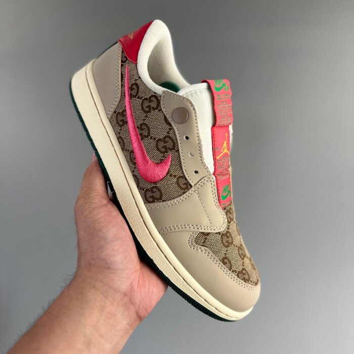 Air Jordan 1 Low Slip x Gucci – Color Light Red – 06DHLH12-209 – Full Size 36-46