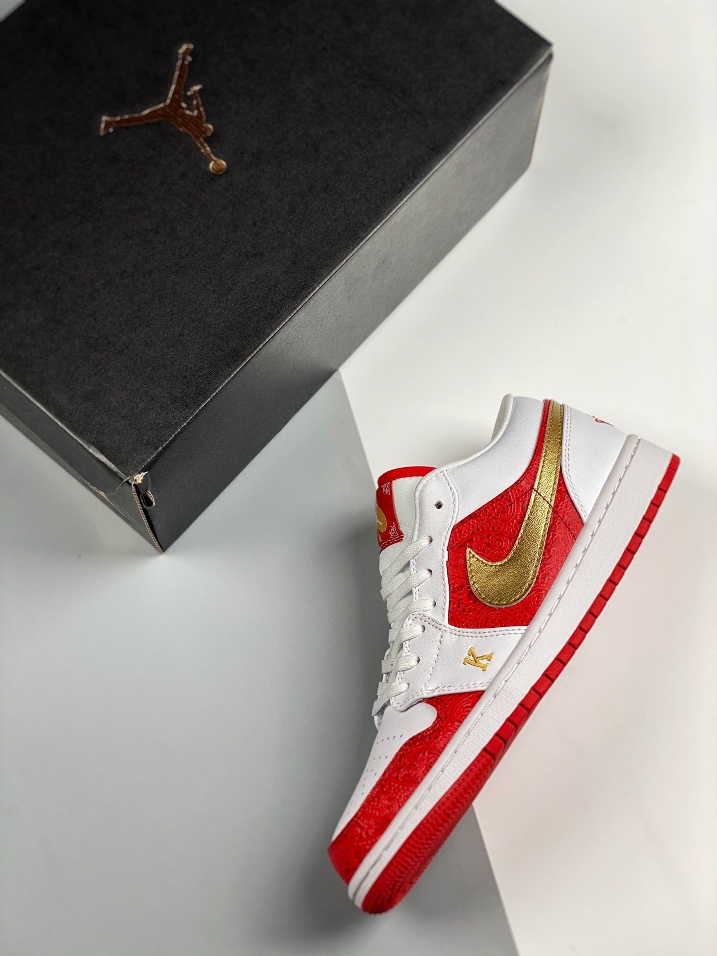 Air Jordan 1 Low ” Spades” White Red Gold