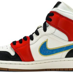 The Women’s Air Jordan 1 Mid SE ??Let(Her)man?? is a women’s exclusive release of Michael Jordan’s first signature shoe in a colorway inspired by the Jordan Wings scholarship program. Moreover . the ??Let(Her)man?? is a play on the word ??letterman?? and its design is influenced by the varsity jackets worn across college campuses. Details include Sail leather on the perforated toe . mid-panel . and middle eyelet overlay. The same hue of cream is applied to the corduroy detailing on the collar and tongue. Both the toe cap and heel feature black leather overlays. Contrasting fiery Chile Red leather overlays can be found on the forefoot and collar. Branding appears in the form of a light blue felt Swoosh with gold outlining on the mid-panel and gold ??Wings?? emblem on the collar. The same fuzzy material used on the side Swoosh appears on the black tongue tag with gold Jumpman detailing. A cream colored midsole provides an infusion of nostalgic vibes. Release date: November 20 . 2020. | Wmns Air Jordan 1 Mid SE.