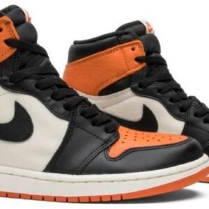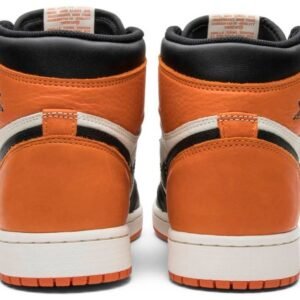 In 1985 on a Nike Europe tour . Michael Jordan shattered a backboard when throwing down a monstrous dunk while wearing an orange . black . and white uniform. Commemorating the moment and uniform . this 2015 Air Jordan 1 ‘Shattered Backboard’ (aka ‘Shattered Backboard’ 1.0) sneaker was released. Shortly after in the Fall of 2016 . an Air Jordan 1 ‘Shattered Backboard Away’ (aka ‘Reverse’ and ‘Shattered Backboard 2.0’) was released. The sneaker keeps the black laces and Nike branding . but swaps out the orange toe box and black around the toe and tongue for white.