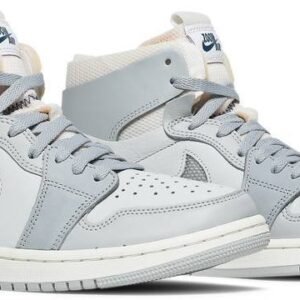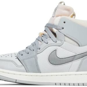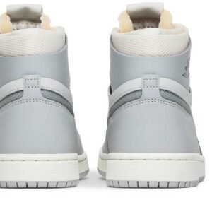 First released in 1985 . the Nike Air Jordan 1 is still one of the most popular shoes today. The signature sneaker of basketball superstar Michael Jordan gets a new look with the 1 ZOOM AIR CMFT. In the colorway “Photon Dust/LT Smoke Grey-Grey Fog” the retro sneaker becomes a real eye-catcher and ties in with the Air Max 1 “London”. The cut-out Swoosh and leather details in “Photon Dust” symbolize the foggy rainy weather in London. The overlays in conjunction with the foam materials make the retro sneaker a modern eye-catcher.