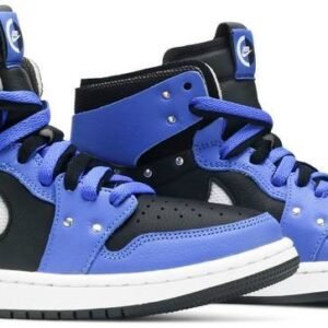 Air Jordan 1 Zoom ‘Sisterhood’ updates the iconic silhouette with enhanced cushioning and a refreshed design. A two-tone black and royal blue color scheme is applied to the leather upper . accented with metallic silver studs for a fashion-forward look. The Swoosh is formed with cut-out detailing that reveals a white mesh underlay . while the deconstructed collar adds a secondary layer of interior foam for improved comfort. Underfoot . full-length Zoom Air cushioning delivers a smooth ride.