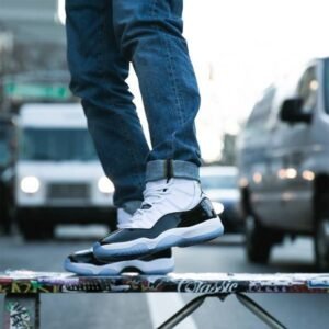 The 2018 edition of the Air Jordan 11 Retro ‘Concord’ features ’45’ stamped on the black heel tab?Da nod to the jersey number that Michael Jordan wore upon his return to basketball following his first retirement. The rest of the build keeps the shoe’s signature details intact . including a white ballistic mesh upper . black patent leather overlays and an icy translucent outsole underfoot.