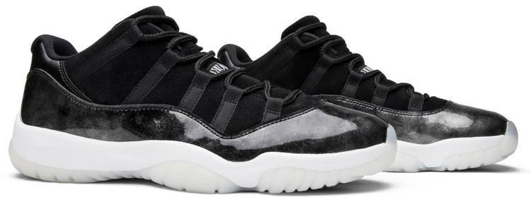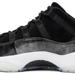 Released in May of 2017 . the Air Jordan 11 Retro Low ‘Barons’ take their inspiration from Michael Jordan’s uniform colors during his short-lived minor league baseball career with the Birmingham Barons. The design features a black nubuck upper with grey patent leather overlays . a white midsole . and a white translucent outsole.
