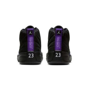 The Air Jordan 12 Retro ‘Dark Concord’ showcases classic color blocking modeled after the silhouette’s iconic ‘Flu Game’ colorway. This pair replaces the older shoe’s Varsity Red accents with a bold violet finish on the sneaker’s signature tall mudguard and rubber outsole. The rest of the upper is constructed from stitched black suede, accented with metallic silver eyelets and embroidered Jumpman branding atop the tongue.