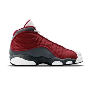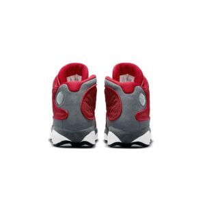 Dressed in a Gym Red, Flint Grey, White, and Black color scheme.This colorway was created initially for Kevin Martin during his days with Houston Rockets. The Air Jordan 13 “Red Flint” looks similar to Kevin Martin’s Jordan 13 PE featuring White leather on the toe, Red reflective mesh on the side panels and Flint Grey suede on the mudguards and heels.