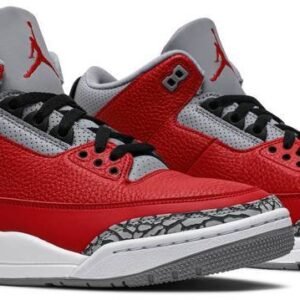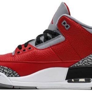 Dropping in conjunction with the 2020 NBA All-Star Weekend in Chicago . the Air Jordan 3 Retro SE ‘Unite’ showcases classic color blocking that stays true to the sneaker’s Windy City heritage. The tumbled leather upper is finished in a bold Fire Red hue . complete with Nike Air branding and grey cement-print overlays at the toe and heel. The mid-top is anchored by a contrasting white midsole with visible Air sole cushioning.