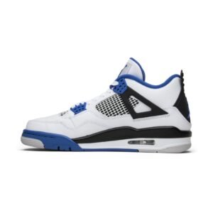 The Air Jordan 4 Retro ‘Motorsports’ is inspired by a 2006 friends and family colorway created for the 4th anniversary of MJ’s Motorsport’s Racing team. Released to the general public in March of 2017, the sneaker incorporates the teams’ white, black, and varsity royal blue colors, but removes the Mars Blackmon heel accent that graced the 2006 sneake. An Air Jordan 4 Retro Motorsports Alternate,’ released a few months later in a black colorway.