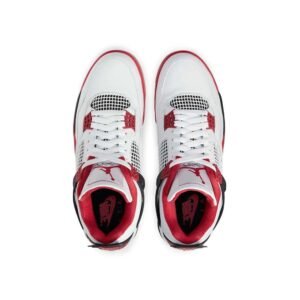 Uppers are built from white leather, with signature “Fire Red” detailing arriving on the top and bottom eyestays, tongue badge, collar trim and aforementioned heel branding. This is contrasted with black under the quarter and tongue’s netting as well as on the “wings” and under the heel’s graphic hit. Midsoles combine black, white and red, with gray Air Max units and tri-colored, Nike-branded outsoles finalizing the look.