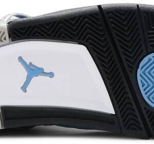 The Air Jordan 4 Retro ‘University Blue’ updates the classic silhouette with a suede upper in a familiar hue inspired by Michael Jordan’s UNC alma mater. The bright blue palette is contrasted by a speckled grey finish on the sneaker’s supportive wings and back heel . featuring a raised Jumpman icon in black. Secondary Jumpman branding adorns the woven tongue tag . designed to mimic a jock tag that typically appears on the bottom hem of Jordan jerseys.