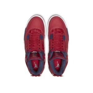 Dressed in a Gym Red, White, Metallic Gold, and Obsidian color scheme. This Air Jordan 4 features a Gym Red upper with Obsidian detailing atop a White midsole. Highlighting the shoe are graphics inspired by the national flags from the participants of the tournament replacing the netting on the sides as well as on the lower tongue. Also added is a “For The Love of The Game” label on the inner tongue.