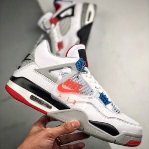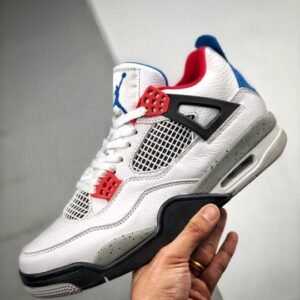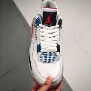 Air Jordan 4 ” What The” White/Fire Red-Tech Grey-Military Blue