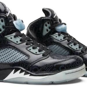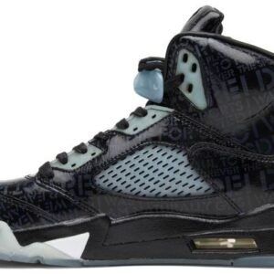 Commemorating the 2012 Doernbecher Freestyle Program . Nike teamed up with the late Isaac Arzate for his own rendition of the Jordan 5. The shoe’s polished black patent leather upper is accented with tonal lettering that stands out under a blacklight. The text displays a poem that Isaac wrote the day before he passed. The sneaker also showcases Isaac’s baseball and basketball numbers and incorporates his initials . birthday and date of passing on the tongue tag.