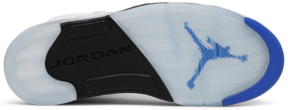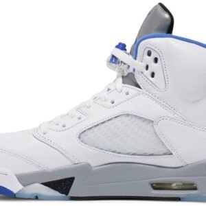 The Air Jordan 5 Retro ‘Stealth 2.0’ delivers a refreshed take on the original ‘Stealth’ Air Jordan 5 from 2006. The mid-top makes use of tumbled white leather throughout the upper . accented with powder blue Jumpman branding on the back heel and reflective silver tongue. A pale grey finish is applied to the midsole . featuring a visible Nike Air unit in the heel and a subtle paint splatter effect on the AJ5’s signature shark tooth detailing.