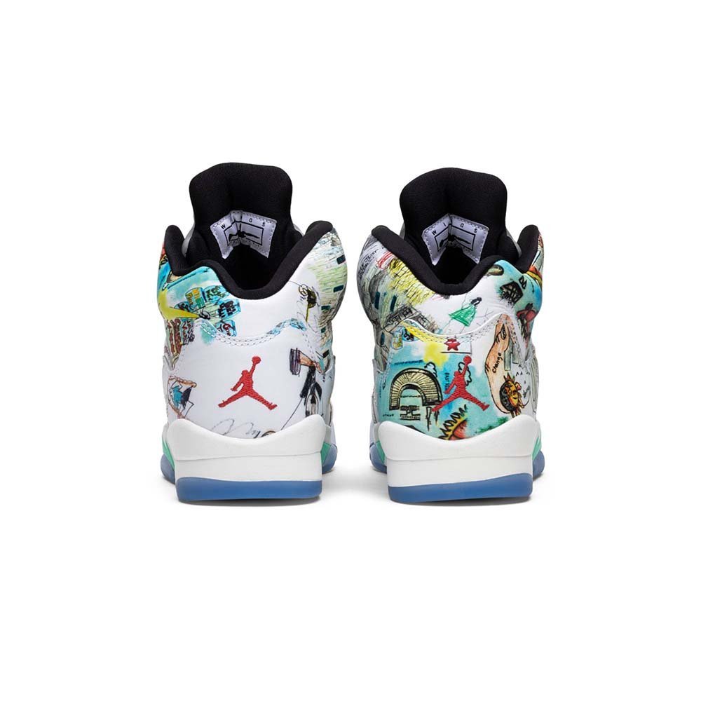 The Air Jordan Retro 5 “Wings” translates the importance of childhood education into something tangible with sneakers of true significance. Created as part of the Jordan WINGS program, this kid’s sneaker mimics the men’s Jordan sneaker with sketches from city streets, inspirational text, and mint green highlights on the shoe’s shark teeth and lace stays. A wings-style graphic on the quarter panel replaces the sneaker’s standard perforations. Michael Jordan has gifted full college scholarships to over 200 high school seniors over the course of the initiative.