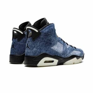 The Air Jordan 6 “Washed Denim” is a lifestyle remake of the early ’90s performance basketball icon that was worn by Michael Jordan when he captured his first NBA Championship. The “Washed Denim” colorway is part of Jordan Brand’s continued efforts of pushing their core classics towards a modern lifestyle aesthetic. A medium wash blue denim material covers the entire upper and is contrasted by a light wash denim base on the mid-panel and toe. Jordan Brand opts for a black nylon tongue that features a “natural” leather lace cover that mirrors a patch that you would find on the back of a pair of jeans. A black mudguard and cream-colored midsole with visible Air in the heel completes the look.