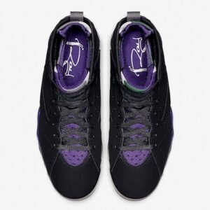 Coming with a supple black nubuck on the upper, this is contrasted by bold purple hits on the side panels and Jumpman logo.