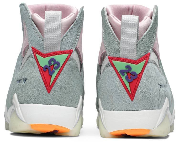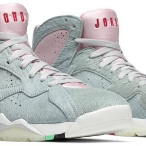 The Air Jordan 7 Retro SE ‘Hare 2.0’ pays homage to Bugs Bunny . Michael Jordan’s costar in a series of classic Jordan TV ads from the early ’90s. The design replicates the look of the iconic Looney Tunes character . featuring a grey pony hair upper with contrasting Pink Foam on the Huarache-like collar and interior bootie. The style code for the original ‘Hare’ Jordan 7 is stamped on the lateral heel . while that shoe’s multi-color accents appear on the semi-translucent rubber outsole.