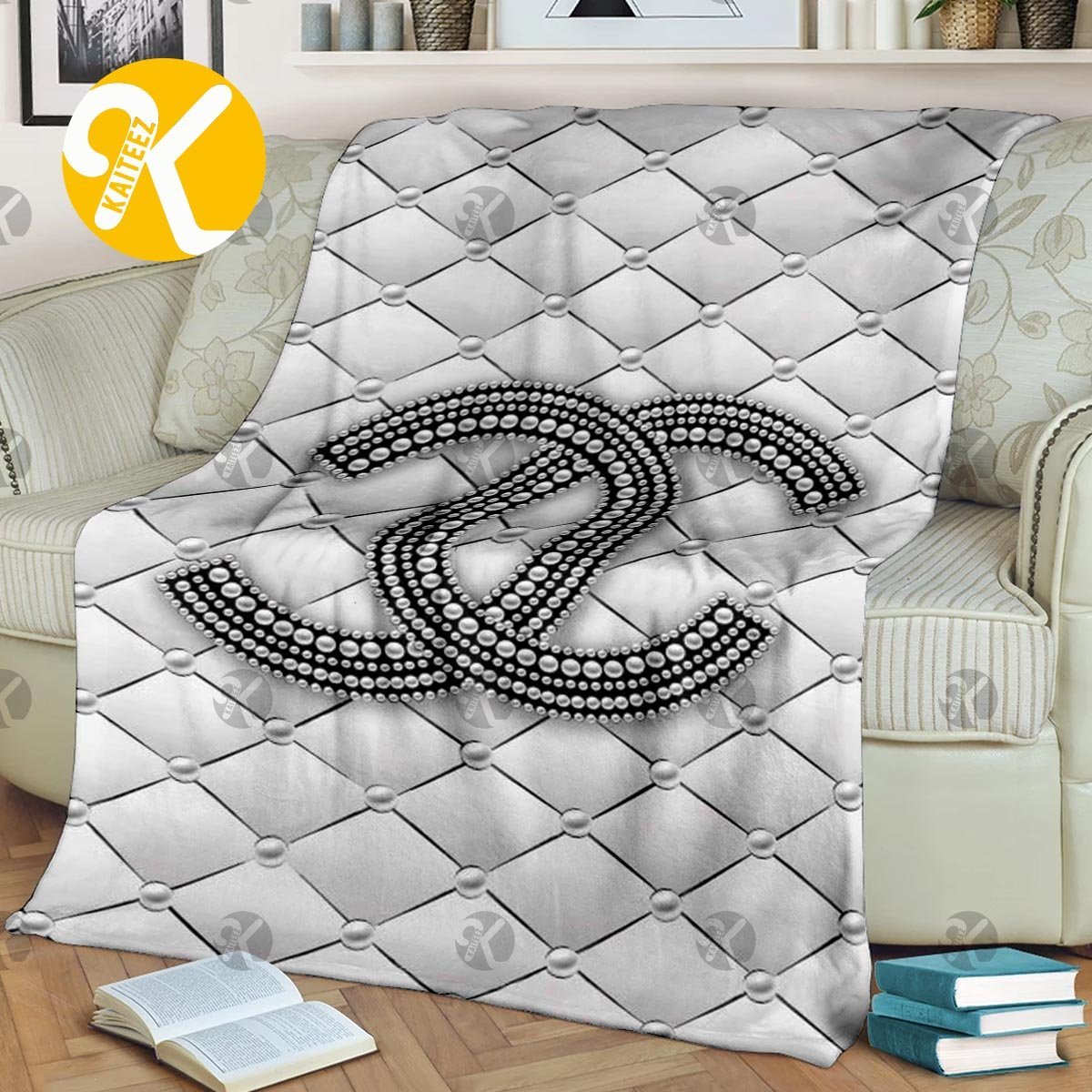 Chanel Big Pearl Logo In White Rhombus Background Blanket