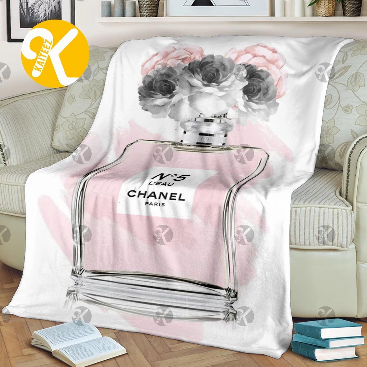 Chanel No.5 Baby Pink Perfume In White Background Blanket