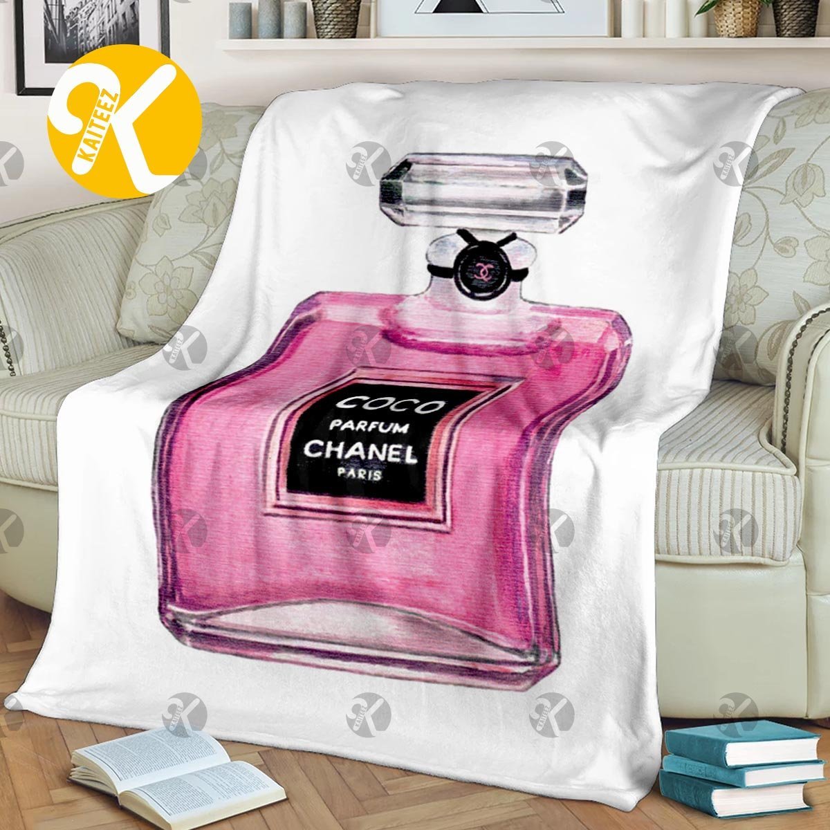 Chanel No.5 Pink Perfume Bottle In White Background Blanket