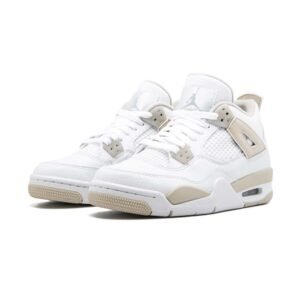 The first retro of the model, this women’s-exclusive colorway is brought to a grade-school size. The ‘Linen’ features Light Sand throughout the primarily white colorway, most notably on the heel and lace applications. The partially encapsulated Air in the heel is also highlighted by surrounding Light Sand. Color is provided by the Jumpman branding, which appears in Border Blue.