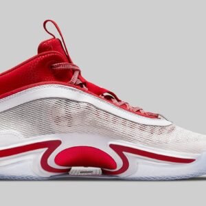 The Air Jordan 36 ‘Canada’ delivers a two-tone PE colorway made for WNBA star Kia Nurse. Launching exclusively in Canada and Jumpman LA in Los Angeles . the performance silhouette makes use of a jacquard leno-weave upper in a crisp white finish. Contrasting hits of crimson make their way to the leather collar and tongue. Lace guards inspired by the Air Jordan 6 display Jumpman branding on the right shoe and Kia’s personal logo on the left. In terms of performance . the sneaker is benefited by a full-length Air Zoom Strobel and a Zoom Air unit stacked beneath the forefoot. A red two-loop band reinforces the foam midsole . featuring a hollowed-out section that reveals the midfoot shank. Underfoot . a translucent rubber outsole yields grippy traction in all directions.