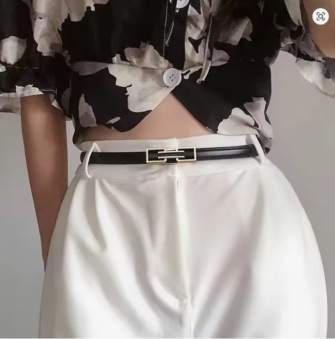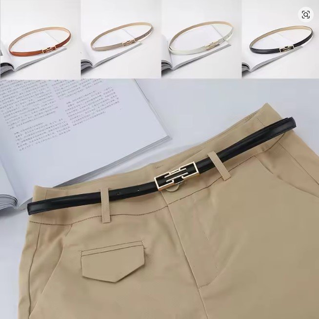 Leather Thin Belt For Women Ladies Golden Metal Buckle Waistband Adjustable Waist Strap