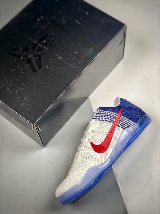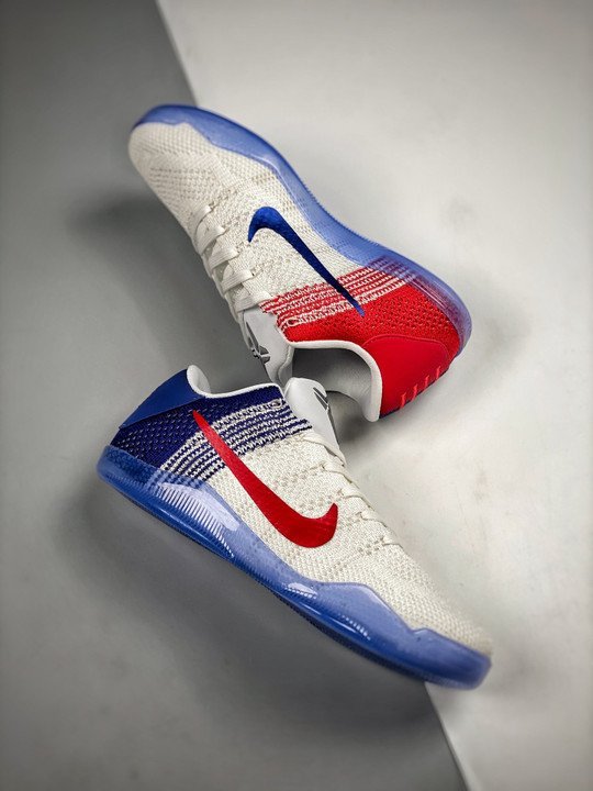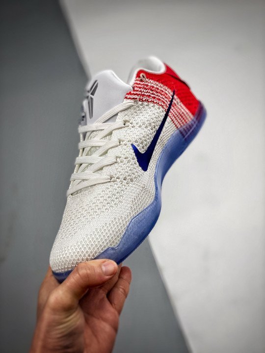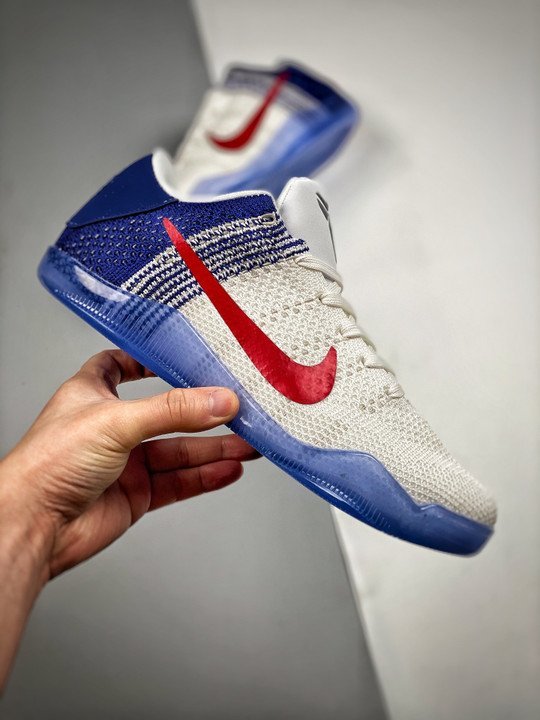 Nike Kobe 11 Elite Low ? USA ? White/University Red-Blue-Metallic Silver