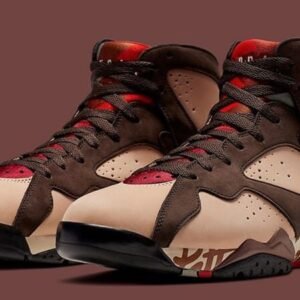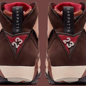 Amsterdam-based boutique and streetwear brand, Patta joins forces with Jordan Brand to lend their signature aesthetic to the Patta x Air Jordan 7 Retro OG SP Shimmer sneaker. Part of a limited-edition capsule collection released in May 2019, this rendition sports an earth-toned color palette of Shimmer, Mahogany Mink, Velvet Brown and Tough Red hues on a premium leather and suede upper. Unique perforation patterns and an offset Jumpman logo accent the underlay, while signature Patta script dresses the triple-tone midsole. A durable rubber outsole equipped with Air technology reinforces the design, which is inspired by Michael Jordans run with the Dream Team at the 1992 Summer Games in Barcelona.