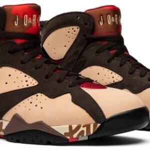 The Patta x Air Jordan 7 is a premium retro edition of the classic model by the renowned Amsterdam boutique. Responsible for some of the most coveted Air Max 1 collaborations of all time . this Jordan 7 marks the first time Patta has worked on an Air Jordan model. Michael Jordan’s seventh signature shoe is constructed with a premium nubuck upper in tones of light tan and brown with red accents. The Patta script logo is added to the midsole for a unique touch. ??TEAM PATTA?? text is also found on the heel tab loops