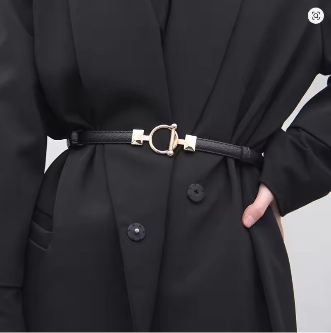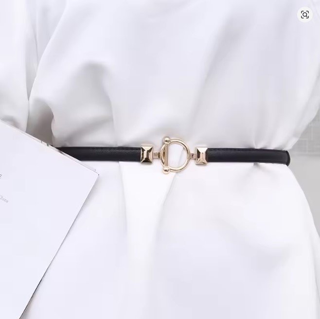 Retro Thin Belt for Women PU Leather Metal Buckle Waistband Ladies Female Coat Dress Adjustable Wild Waist Strap