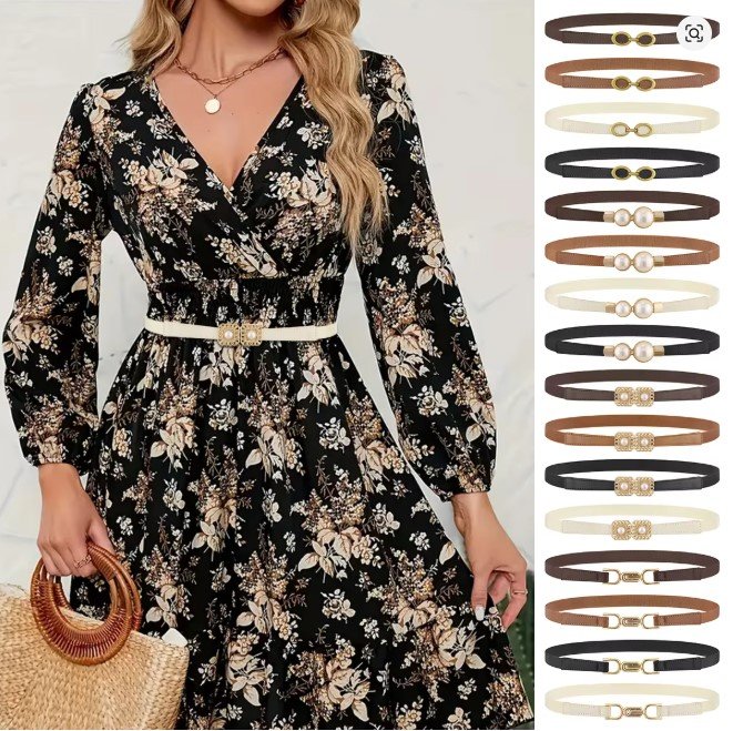 Summer Fashion Women Belts SH024 PU Leather Thin Elastic Waist Belt Slim Waistband