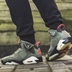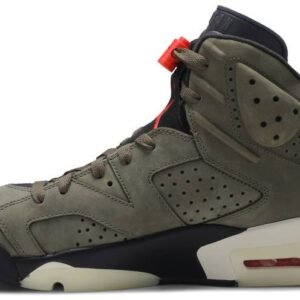 The Travis Scott x Air Jordan 6 Retro ‘Olive’ represents a collaboration between the Houston based rapper and Jordan Brand. This take on the AJ 6 . which Scott debuted while performing during halftime of Super Bowl 53 . released in October 2019. It features a Medium Olive . black . Sail and University Red colorway along with several unique elements: a small pocket with a snap on the collar . a nubuck and suede upper . Scott’s ‘Cactus Jack’ logo on the heel and a glow-in-the-dark translucent outsole.