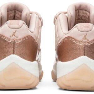 The Air Jordan 11 Low ‘Rose Gold’ released in April 2018 as a women’s-exclusive colorway. While the low-top is missing the AJ11’s signature patent-leather paneling . its premium look and feel are maintained by the addition of Metallic Red Bronze on the mudguard. A similar finish . albeit without the metallic sheen . covers the rest of the shoe’s matte leather upper as well as the translucent rubber outsole underfoot.