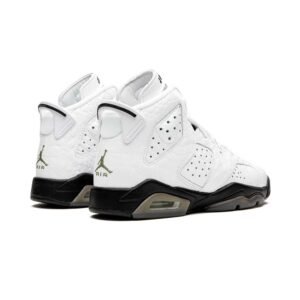 The Air Jordan 6 GS “Alligator” is the youth sizing of this high-fashion-inspired colorway of the iconic ’90s basketball sneaker. Michael Jordan’s sixth signature model receives a dose of opulence as it outfits the entire upper in white gator-textured leather. Perforations on the forefoot, mid-panel, and collar provide contrast. A black nylon patch covering the laces features olive Jumpman branding and classic “Air Jordan” detailing appears on the tongue. Embroidered olive Jumpman detailing on the heel and a black midsole with visible Air cushioning in the heel finish off the look.